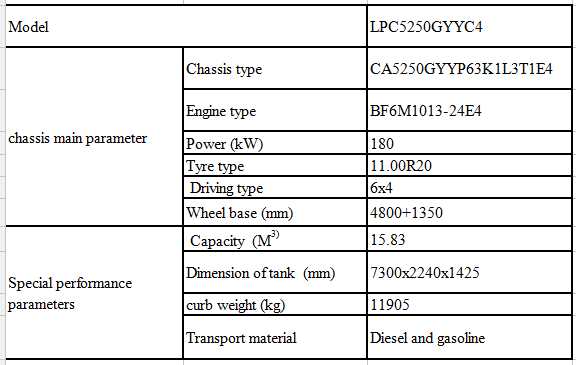 底盤主要性能參數(shù) | 底盤型號(hào) | CA5250GYYP63K1L3T1E4 | |